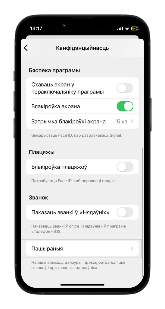 Каб наладзіць параметры Signal, злучаныя з аўдыя- і відэавыклікамі, выканайце наступнае: