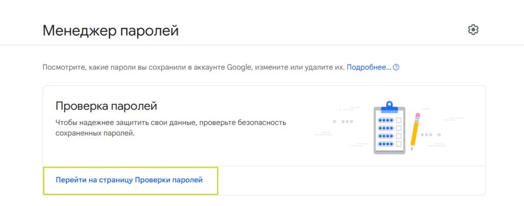 - Перайдзіце ў Google → Менеджар пароляў → «Праверыць» (Check).